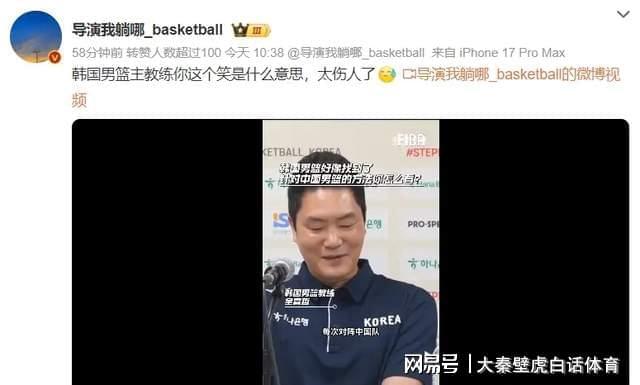 媒體人“導(dǎo)演”曬出一張韓國主教練全熙哲接受采訪的照片,可以看到如此場(chǎng)合下,對(duì)方卻憋不住笑意,引得“導(dǎo)演”本人不由地發(fā)問是什么意思。