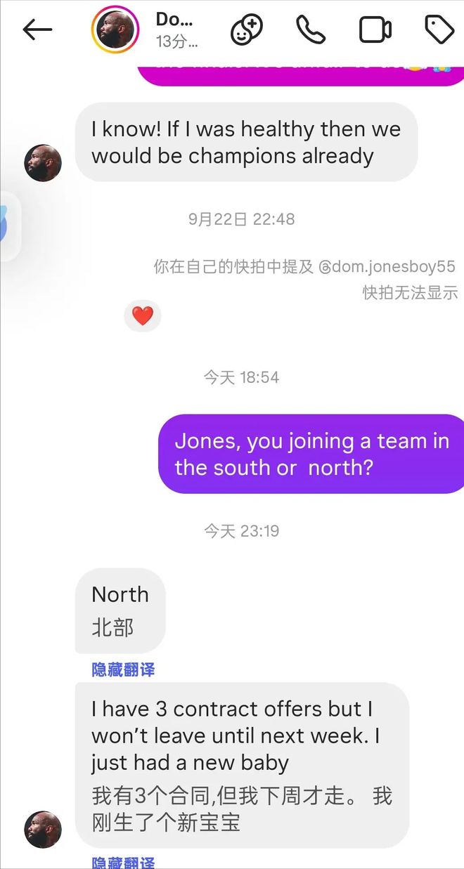 多米尼克瓊斯作為CBA老熟人,在社交媒體透露自己下周將會(huì)回歸CBA聯(lián)賽,目前手里面有3個(gè)合同,而且透露將會(huì)加盟CBA北方球隊(duì),從現(xiàn)在來看包括新疆男籃、北控男籃均是其潛在下家,對(duì)于已經(jīng)證明自己的瓊斯來說,來到CBA賽場將會(huì)保住球隊(duì)下限,對(duì)于一支準(zhǔn)季后賽級(jí)別球隊(duì)來說,瓊斯無疑是一個(gè)不錯(cuò)的選擇。
