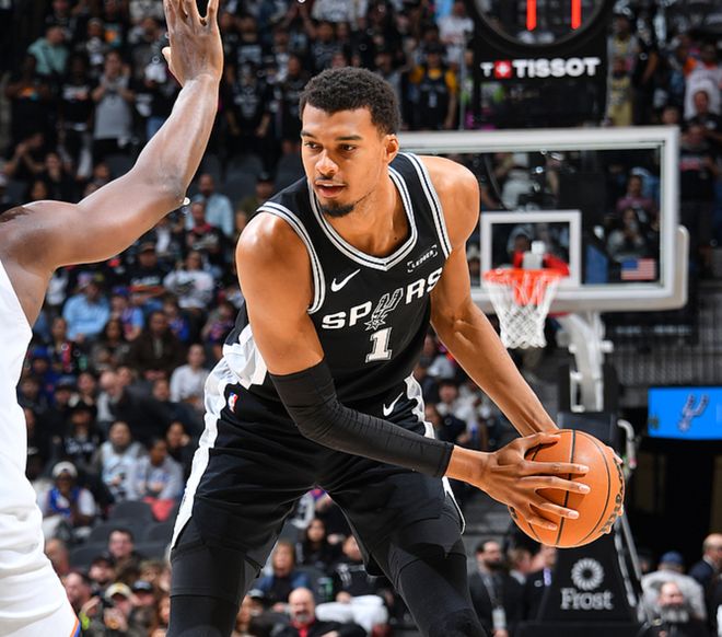 馬刺主場迎戰(zhàn)尼克斯,馬刺少了瓦塞爾,尼克斯少了哈特、米羅,尼克斯前三節(jié)優(yōu)勢明顯,一度領(lǐng)先19分,三節(jié)戰(zhàn)罷領(lǐng)先9分,第四節(jié)文班開局受傷退出比賽,本以為馬刺要輸了,沒想到尚帕尼連中4個三分、??怂挂策B續(xù)得分,最終馬刺以2分優(yōu)勢拿下比賽。尚帕尼17中11(全是三分)得到36分6板,文班12中10得到31分13板,??怂?1中11得到26分7助3斷,尼克斯方面布倫森24中10(三分12中5)得到29分4板8助2斷,唐斯10中5得到20分7板4助,麥克布萊德12中7得到21分3板2助。