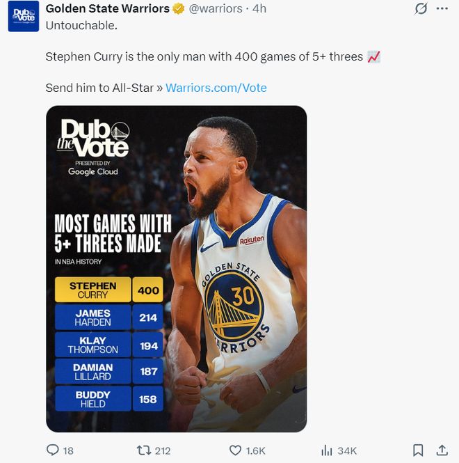 本賽季庫(kù)里12次單場(chǎng)25分+5個(gè)三分球聯(lián)盟第一,愛德華茲有10次第二,37歲的萌神在三分球這項(xiàng)技巧上依舊是第一的存在。