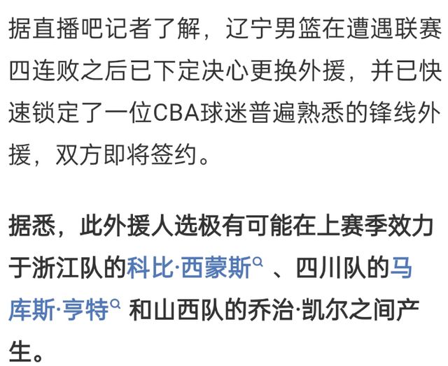 根據(jù)媒體報道,遼寧男籃新外援是一位CBA球迷普遍熟悉的鋒線球員,那么大概率會是亨特,傳聞遼寧男籃之前就和亨特接觸過,但是合同分歧比較大。