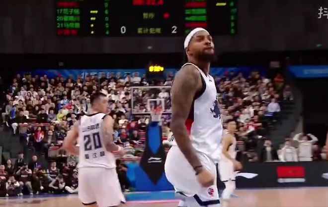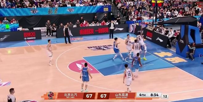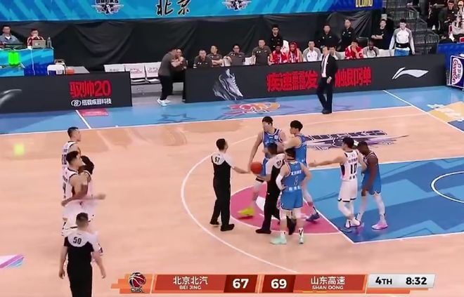 第四節(jié)賽場突發(fā)火藥味!比賽還剩下8分鐘34秒,山東外援珀賽爾殺入北京隊(duì)禁區(qū),一躍而起雙腳騰空隔扣了周琦,