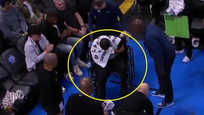 暫停期間,他跪倒在地,隨后76人隊的工作人員、訓(xùn)練師以及同為裁判的詹姆斯-威廉姆斯立刻圍了上來??夏岬献罱K被輪椅推離賽場,頭上蓋著一條毛巾,神情看上去痛苦難忍。