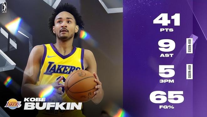 不過本賽季至今,巴夫金的健康狀況有所好轉(zhuǎn),他為湖人下屬發(fā)展聯(lián)盟球隊南灣湖人出戰(zhàn)14場。這位身高1米93的后衛(wèi)在G聯(lián)盟賽場打出了亮眼數(shù)據(jù),場均出戰(zhàn)34.5分鐘,貢獻26.7分、4.9個籃板、4.3次助攻、1.3次搶斷和1.3次封蓋,投籃三項命中率更是達到精英級別的51.9%/40.9%/90.2%,達到180俱樂部標準。他在G聯(lián)賽打出過單場41分9助攻和42分6籃板這樣的表現(xiàn)。