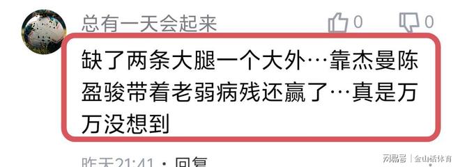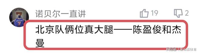 陳盈駿本場(chǎng)的表現(xiàn),也得到了許多網(wǎng)友的贊揚(yáng)?!氨本╆?duì)兩位真大腿——陳盈俊和杰曼。”;“陳盈駿是北京男籃晴雨表!”;“缺了兩條大腿一個(gè)大外…靠杰曼陳盈駿帶著老弱病殘還贏了…真是萬(wàn)萬(wàn)沒(méi)想到”;“這場(chǎng)憑借陳英俊和杰曼的穩(wěn)定發(fā)揮以及全員的努力防守,勉強(qiáng)拿下,獲得了兩天的呼吸權(quán)”……