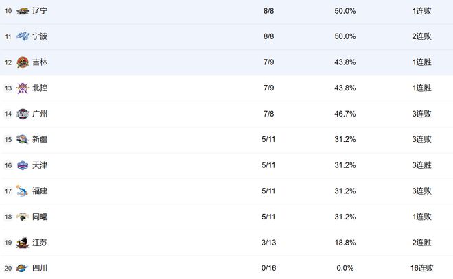 江蘇目前已經(jīng)兩連勝了,好像有點崛起的意思了,龐崢麟的能力值得信賴。四川現(xiàn)在是16連敗。