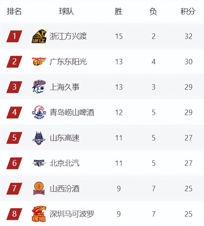 廣廈豪取6連勝繼續(xù)高居榜首,廣東暫時(shí)來(lái)到第二,廣廈和身后的廣東已經(jīng)完全拉開了差距,目前廣廈陣容齊整,不出意外的話,他們會(huì)是第一階段的榜首球隊(duì)。山東擊敗吉林后,暫時(shí)來(lái)到第5,青島戰(zhàn)略性放棄比賽,讓廣東隊(duì)重新坐穩(wěn)了前三位置,青島目前還是第4,看情況,青島是將目標(biāo)留在了未來(lái)和寧波廣州的兩場(chǎng)比賽,上海本輪將迎戰(zhàn)北京,這將是一場(chǎng)重頭戲,但相比之下,北京這次輸球的可能性很大,畢竟球隊(duì)現(xiàn)在也是傷兵滿營(yíng),真不好打。