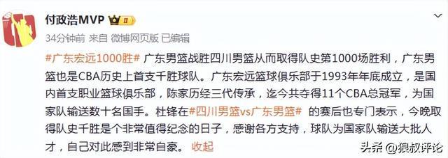 廣東主帥杜鋒采訪當(dāng)中談到第1000勝的話題表示: