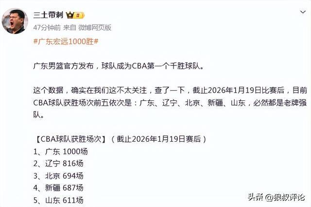 2026年1月19日,廣東宏遠成為CBA歷史上第一個拿到1000場勝利的俱樂部!這不僅是一個數(shù)字,更是一代代宏遠人用無數(shù)汗水與熱血凝聚而成的一段王朝史詩!