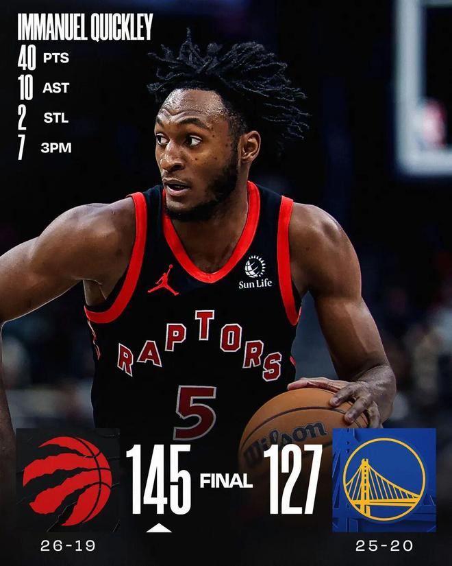 奎克利40分庫里16中6 猛龍大勝勇士