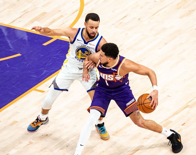 而庫(kù)里不在場(chǎng)時(shí),球隊(duì)的凈效率值是+4.2(主要是巴特勒帶隊(duì))。先不著急下結(jié)論,繼續(xù)看。巴特勒在場(chǎng)時(shí),球隊(duì)凈效率值是+7.6,但和庫(kù)里同時(shí)在場(chǎng)時(shí),反而低于巴特勒在場(chǎng)平均值。這里面問題就太大了!先強(qiáng)調(diào)一點(diǎn),庫(kù)里是NBA劃時(shí)代的傳奇超巨,開啟了三分時(shí)代先河,包括帶領(lǐng)勇士建立王朝,他注定要被載入史冊(cè)。但本賽季的現(xiàn)實(shí)是他即將年滿38歲!其實(shí)上賽季就已經(jīng)有這個(gè)苗頭了(巴特勒上賽季凈效率值是+9.2,庫(kù)里是+5.3,兩人同時(shí)在場(chǎng)時(shí)球隊(duì)凈效率值是+5.8)。簡(jiǎn)單來(lái)說(shuō),庫(kù)里提供進(jìn)攻保障,巴特勒則托起全隊(duì)。