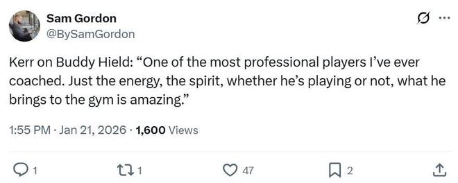 作為勇士隊內(nèi)巴特勒最好的朋友,希爾德上一場在好友受傷后第一時間沖上去查看情況,也是他架著巴特勒回到更衣室。