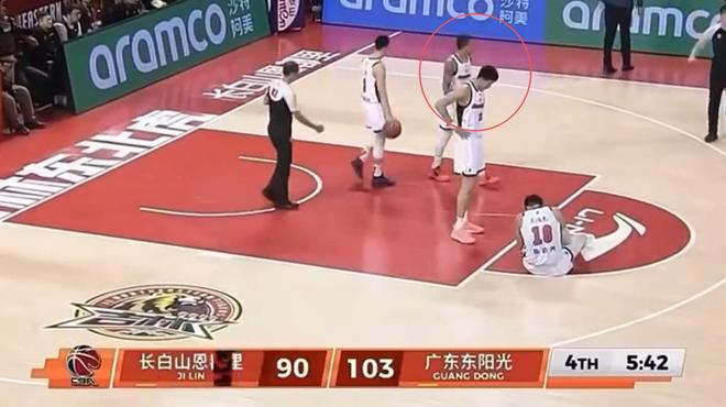 昨晚還有一個畫面,個人覺得不對勁。比賽戰(zhàn)至末節(jié)還剩5分42秒時,焦泊喬被隊友胡明軒絆倒,前者顯然是扭了腳,倒地后一度沒有起來,最后被隊友扶著單腳跳出場外。焦泊喬倒地后,等吉林進攻回合完成后,裁判吹停了比賽,此時焦泊喬還未起來,附近的隊友王少杰和奎因紛紛前去看望焦泊喬,關心他的傷情。而絆倒焦泊喬的胡明軒卻漠不關心,抱著球揚長而去。雖然我是廣東球迷,也要對胡明軒這種冷漠的態(tài)度進行批評。
