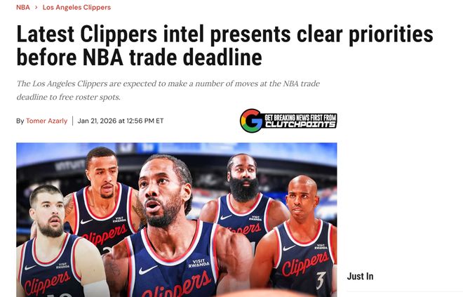文中還提到,快船隊正在想辦法將兩位出色的雙向合同球員(喬丹-米勒、科比-桑德斯)轉(zhuǎn)為標(biāo)準(zhǔn)合同,快船隊需要騰出兩個空位,從目前來看保羅、科比-布朗兩人是最可能在交易截止日前離開的球員,科比-布朗、保羅兩人都有可能被快船直接裁掉。