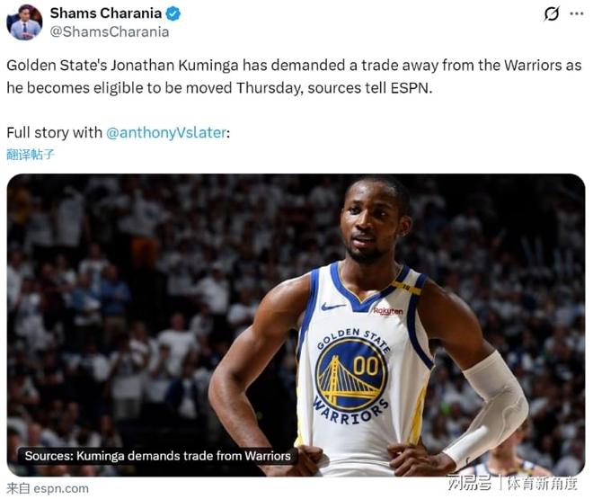 據(jù)知名記者Sam Amick透露,勇士隊(duì)早已將庫明加置于交易貨架之上,且這一狀態(tài)已持續(xù)良久,然而,市場(chǎng)對(duì)此反應(yīng)冷淡,幾乎無人問津……Sam Amick進(jìn)一步指出,盡管庫明加與主教練科爾之間的關(guān)系已降至冰點(diǎn),但隨著巴特勒的意外受傷,庫明加的未來走向陡生變數(shù)。他究竟會(huì)勇士,暫時(shí)頂勒的位置?還是會(huì)被勇士迅速打包交易,這無疑成為了一個(gè)亟待解答的謎題。