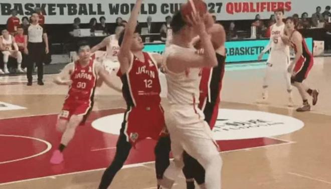 日本隊球員在防守趙繼偉時,腿部有一個明顯的攻擊動作,直接將趙繼偉絆倒。中國男籃主教練郭士強不滿吹罰,第一時間申請回放。
