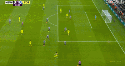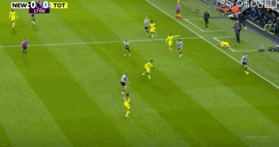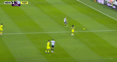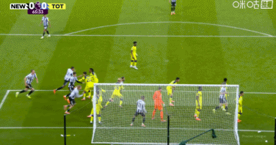 第71分鐘,吉馬良斯禁區(qū)左路推射遠(yuǎn)角破門,紐卡1-0熱刺