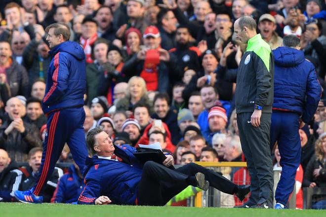 2016年2月28日,英超第27輪,曼聯(lián)3-2戰(zhàn)勝阿森納。第75分鐘,曼聯(lián)主帥、64歲的范加爾向第四官員投訴桑切斯假摔,并在第四官員面前示范了一次真正的假摔。