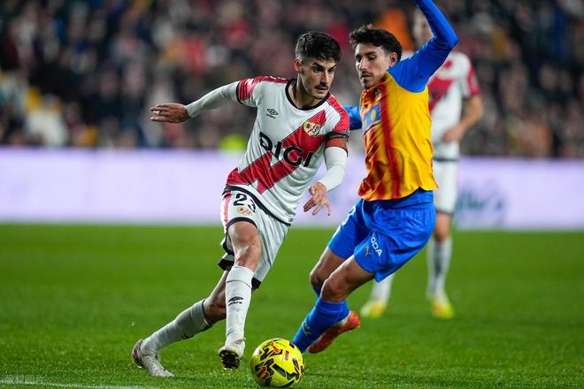 第10分鐘,瓦倫西亞前場(chǎng)右側(cè)高位逼搶斷球反擊,里奧哈回傳,杜羅禁區(qū)內(nèi)接球左腳大力掃射稍稍偏出擊中邊網(wǎng)之上。第25分鐘,巴列卡諾左路壓上,連續(xù)的傳遞,瓦倫西亞這邊解圍失誤,德弗魯托斯小禁區(qū)內(nèi)搶點(diǎn)小角度掃射,阿吉雷扎巴拉奮力撲了一下,皮球彈到中路,佩雷茲搶到第2落點(diǎn)補(bǔ)射空門,科佩特門線上頭球解圍救險(xiǎn)將球頂出。第36分鐘,巴列卡諾右側(cè)角球機(jī)會(huì),一個(gè)戰(zhàn)術(shù)配合后,賈巴烏30度角兜傳門前,門迪前點(diǎn)搶點(diǎn)回頭望月甩頭攻門,皮球應(yīng)聲入網(wǎng),巴列卡諾1:0首開紀(jì)錄。