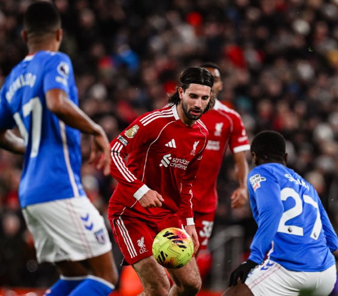 第37分鐘,休姆禁區(qū)前一腳大力遠(yuǎn)射被阿利松撲了一下后擊中橫梁彈出。第44分鐘,麥卡利斯特禁區(qū)頭球攻門擊中立柱出了底線。