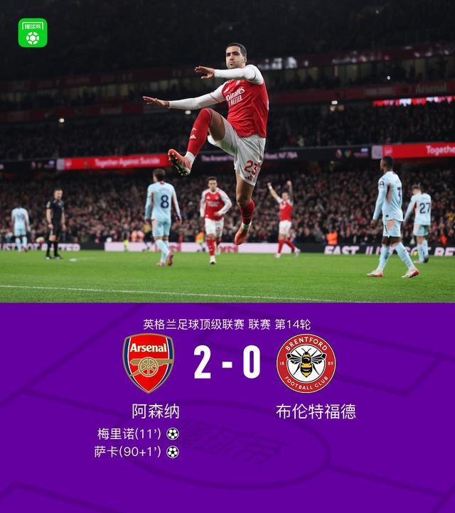 北京時間12月4日,英格蘭足球超級聯(lián)賽第14輪,阿森納坐鎮(zhèn)主場迎戰(zhàn)布倫特福德。上半場,本-懷特助攻梅里諾頭球破門,沙德甩頭攻門被撲后中楣,莫斯克拉傷退;下半場,梅里諾助攻薩卡扣過防守打門得手。憑借這兩粒進球,阿森納以2比0戰(zhàn)勝對手,全取三分。