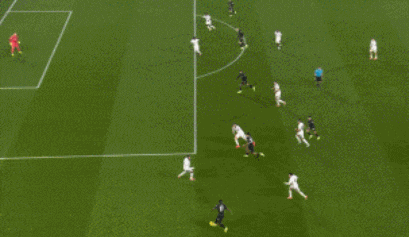第42分鐘,法國前鋒頭球擺渡卡馬文加進球。第59分鐘,姆總大禁區(qū)外一腳爆射破門!