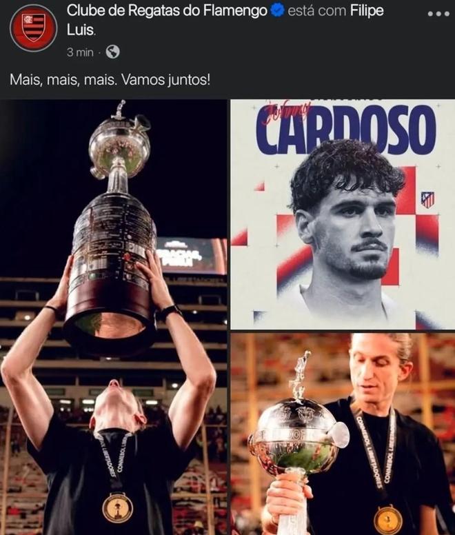 據(jù)《馬卡報》報道,弗拉門戈官方社媒出現(xiàn)嚴重失誤:在發(fā)布主帥菲利佩-路易斯續(xù)約公告時,錯誤附上了馬競中場約翰尼-卡多佐的照片,瞬間點燃轉(zhuǎn)會謠言。