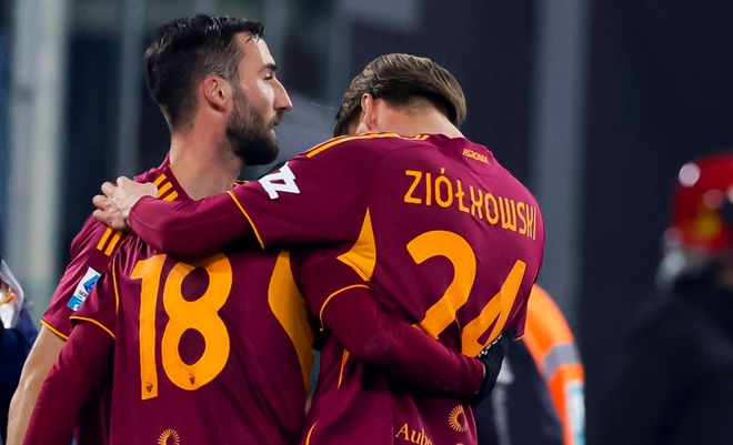 本場(chǎng)比賽羅馬排出3421陣型。埃文-弗格森頂在最前面。馬蒂亞斯-蘇萊和迪巴拉聯(lián)袂出擊。切利克、克里斯坦特、夸迪奧-科內(nèi)和韋斯利-利馬組成4中場(chǎng)。詹盧卡、曼奇尼、焦烏科夫斯基和埃爾莫索3后衛(wèi)首發(fā)出戰(zhàn)。斯維拉爾擔(dān)任首發(fā)門將。沙拉維、多夫比克、皮西利和吉拉爾迪坐在替補(bǔ)席待命。