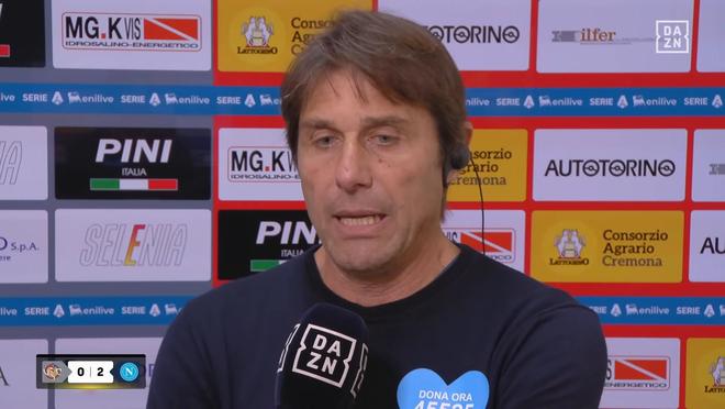率隊在意甲第17輪客場2-0擊敗克雷莫內(nèi)塞之后,那不勒斯主教練孔蒂接受了來自DAZN的采訪。