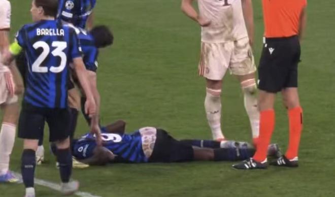 這又是一場被安排得明明白白的比賽代表作之一,篇幅原因只說兩個縮影:第一個,比賽第2分鐘,勞塔羅被對手側(cè)面鏟翻,防守球員連球都沒踢到,裁判直接不予理睬,比賽繼續(xù)!第二個,25分鐘,勞塔羅禁區(qū)內(nèi)爆射進(jìn)球;主裁判在VAR都沒放完的情況下倉促判定手球在先,進(jìn)球無效;是否多個角度VAR顯示,并不存在手球情況。