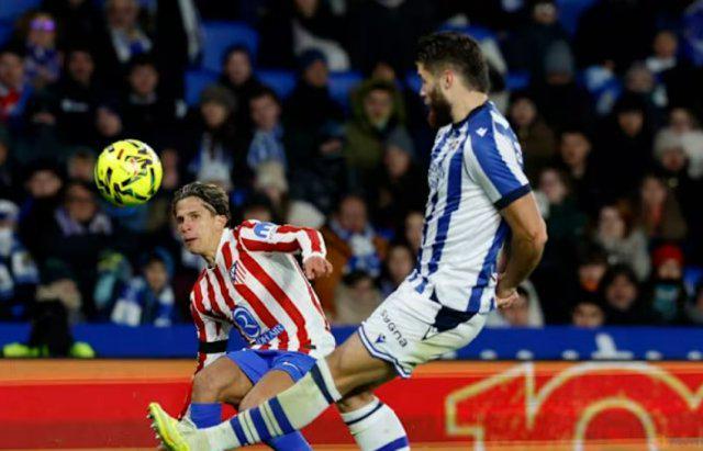 西甲第18輪,馬競客場1比1戰(zhàn)平皇家社會。第50分鐘,朱利亞諾·西蒙尼右路傳中,瑟洛特頭球破門,馬競1比0領先。第55分鐘,久保建英右路橫傳,格德斯后點得球,勁射破門,皇家社會將比分扳平。馬競19輪過后積38分,排名第4。