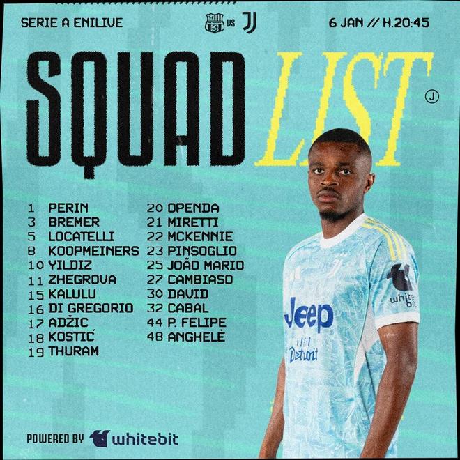 北京時(shí)間1月6日,尤文圖斯官方公布了意甲第19輪客場(chǎng)對(duì)陣薩索洛的大名單。