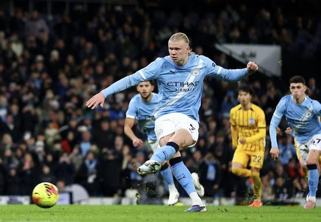 此役主場(chǎng)對(duì)陣布萊頓,哈蘭德在上半場(chǎng)第41分鐘主罰點(diǎn)球破門,幫助曼城取得1-0領(lǐng)先。