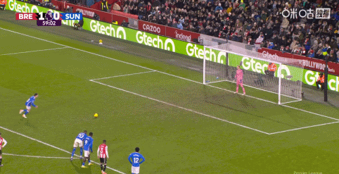 第73分鐘,亞爾莫柳克禁區(qū)抽射破門,布倫特福德3-0
