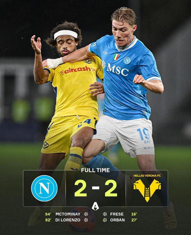 第82分鐘,隊長迪洛倫佐迎球推射得手,那不勒斯連扳兩城,將比分定格在2-2。