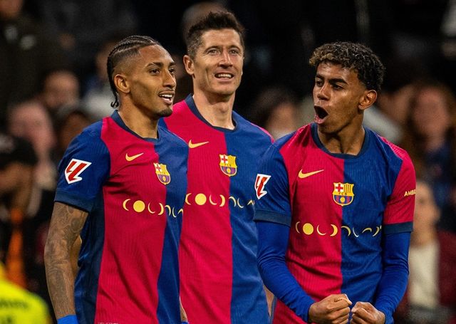 去年1月的西超杯,巴薩2-0戰(zhàn)勝畢爾巴鄂競(jìng)技,皇馬3-0輕取馬洛卡,決賽連續(xù)3年上演國(guó)家德比對(duì)決。這場(chǎng)決賽打得極為精彩,亞馬爾、萊萬(wàn)、拉菲尼亞(2球)的三叉戟破門(mén),巴爾德打進(jìn)1球,皇馬則由姆巴佩、羅德里戈破門(mén),巴薩5-2大勝。