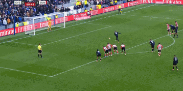 第41分鐘,穆杰萊倒掛金鉤打門,皮克福德救險