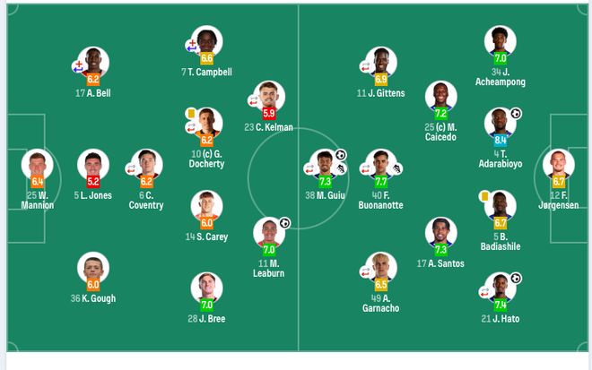 切爾西首發(fā):12-約恩森、34-喬什·阿昌龐、4-阿達拉比奧尤、5-巴迪亞西勒、21-哈托(83’29-福法納)、25-凱塞多、17-桑托斯、11-吉滕斯(67’41-埃斯特旺)、40-博納諾特(69’8-恩佐)、49-加納喬(83’7-內(nèi)托)、38-吉烏(69’9-德拉普)。