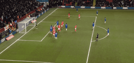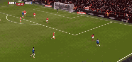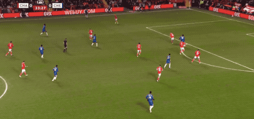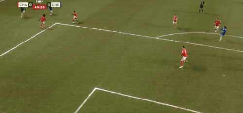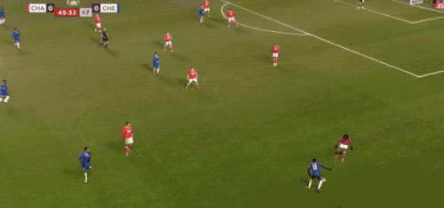 第34分鐘,切爾西在前場連續(xù)一腳傳球,阿昌龐的遠射力量十足,門將奮力將球撲出。