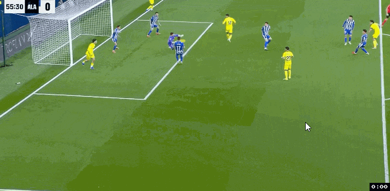 僅再過6分鐘,比利亞雷亞爾右路快速反擊,穆里尼奧帶球突入禁區(qū)橫傳門前找米考塔澤,門將西維拉出擊奮力將球撲出,莫雷諾禁區(qū)內一步搶到第2落點,迎球左腳凌空掃射,皮球直入球門右下死角,比利亞雷亞爾6分鐘連進2球2:0領先。第63分鐘,阿拉維斯獲得禁區(qū)弧頂前位置還不錯的任意球機會,馬丁內斯操刀主罰大力轟射,皮球穿過人墻直奔球門而去,門將喬尼爾奮力將球撲住。