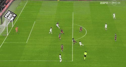 拉菲尼亞選擇自己射門,瓊阿梅尼防守不及,皮球打進(jìn)遠(yuǎn)角,巴薩取得領(lǐng)先。